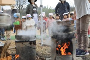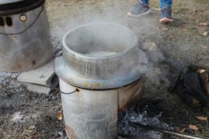 羽釜でコメを炊いています