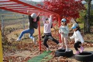 園庭では雲梯