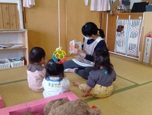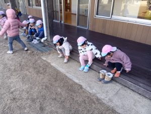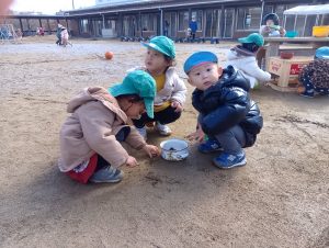 乳児組の子どもとたちも今日は幼児組の園庭で遊びました。