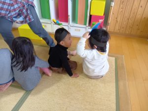 幼児組の子どもたちも一緒に遊べるということで、お兄さん、お姉さんぶりを発揮していましたよ。