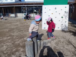 だんだんと行動範囲が広がり、丸太渡りにもチャレンジ!!