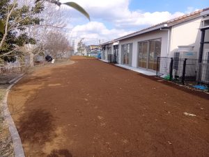 そのため木のブロックをはがして粉砕し、粉砕したものを敷きなおしています。