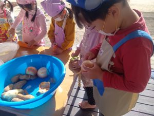 お彼岸後の園庭では、おいしそうなお団子ができていました。
