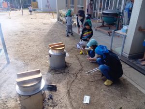 興味のある子が「アルファ米」の米炊きの手伝いにも参加してくれたり