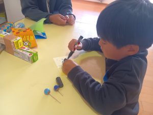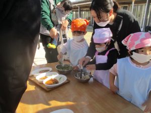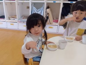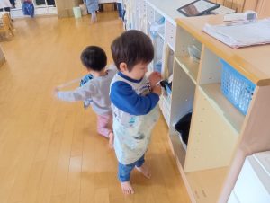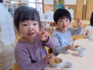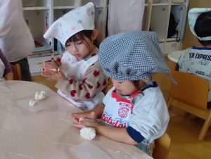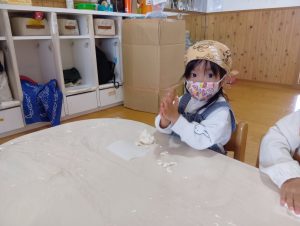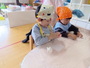 最近、粘土遊びを楽しんでいる、よもぎ組さん。