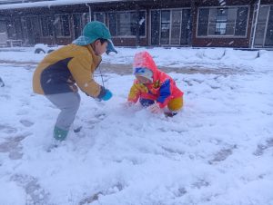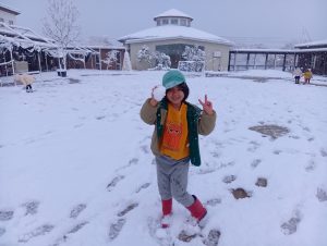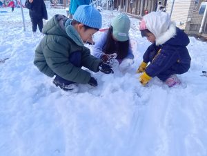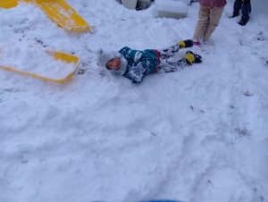 朝から元気印の子どもたちが、全身で積雪を楽しんでいます。
