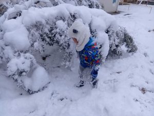 ちょっと寒いけど、雪遊びした~い♡と戸外へ・・・。