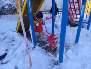 さて、今季最強寒波が訪れ、保育所にも積雪があります。