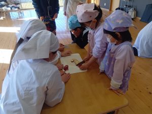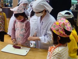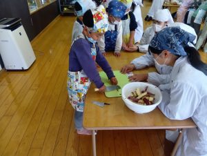 はじめに手洗いの大切さや包丁の使い方なども教えてもらい、その後、調理に入りました。