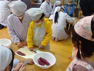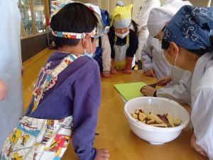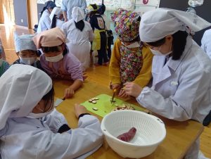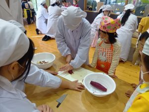 先日、庄原実業高校と育てたサツマイモを使って食育(調理)交流を行いました。