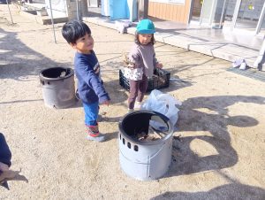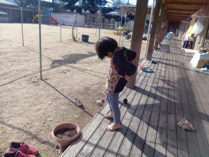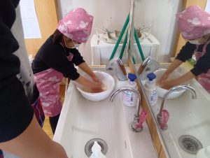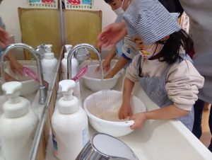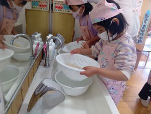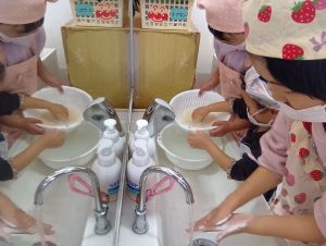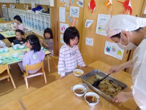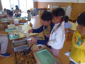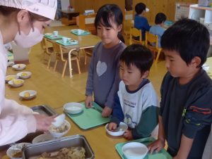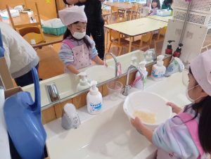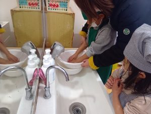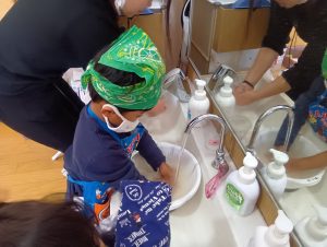 子どもたちも自主的にエプロンをつけはじめます。