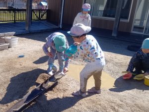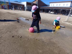 天気が良かったので幼児組の園庭でいっぱい遊びました。