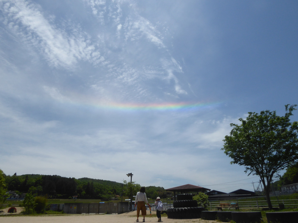 2020/5/14 環水平アーク お昼ごろ、みのり保育所から見る空に、虹色の光が… 環水平アークです。 広い青空に映えて、美しかったです。 自然は時に、思いがけない現象を見せてくれますね。 « 前の記事へ 次の記事へ »