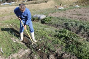 今日の農吉ファームの作業は、畑へのもみ殻入れと、